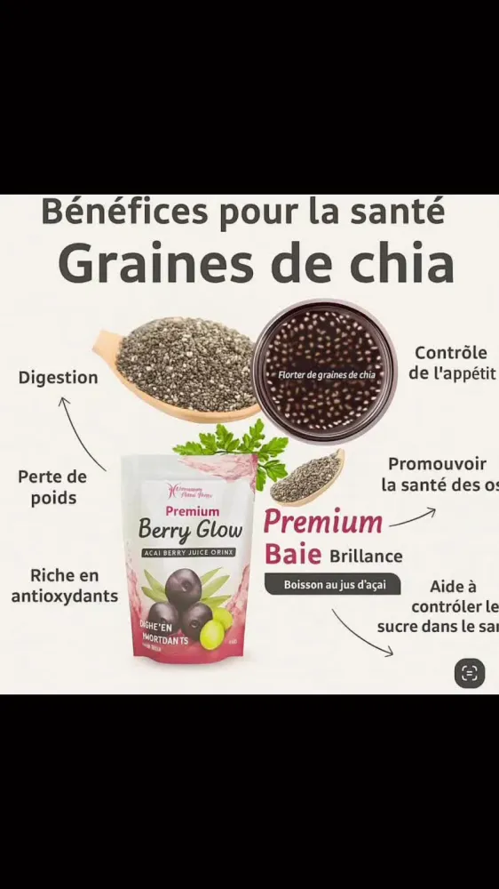 Pour le même prix de 7000 FCFA, profitez maintenant d’un supplément de 75 g de graines de CHIA OFFERT ! 💥